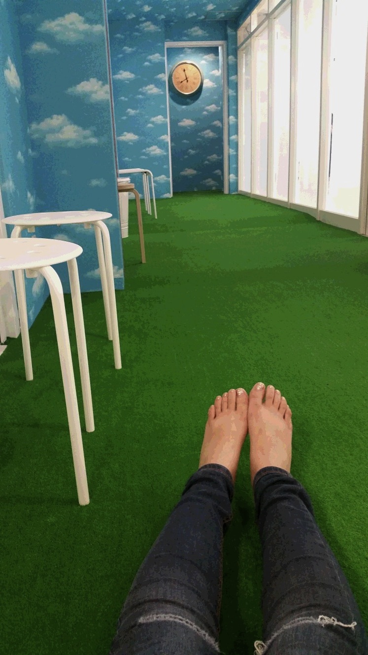 スタジオ前は芝生なので